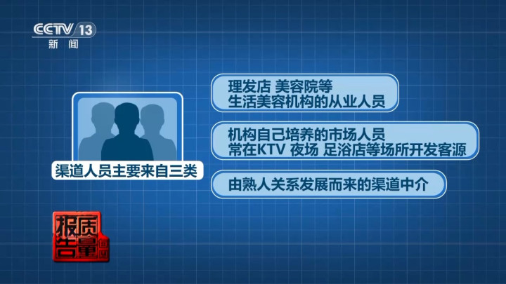 记者在对多家渠道医美机构调查后了解到,渠道人员主要来自三类,一是理发店、美容院等生活美容机构的从业人员。二是机构自己培养的市场人员,常在KTV、夜场、足浴店等场所开发客源;三是由熟人关系发展而来的渠道中介。