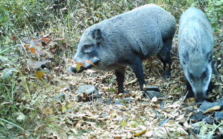 按照习性,野猪大部分时间在深山生活,每年春秋时节下山,靠近人类农田,寻找春季刚刚播下的种子和秋季成熟的庄稼,夏天和冬天则多在深山,以草木、种子、昆虫、动物尸体等为食,不容易追踪,只能依靠红外相机的拍摄情况进行大致估计。
