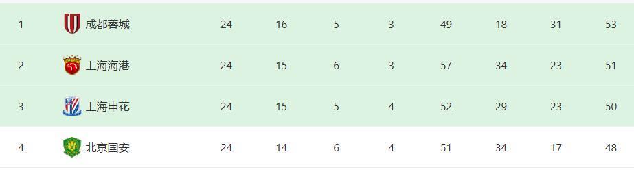 成都蓉城这个赛季虽然阵容捉襟见肘,队内矛盾也危机四伏,但球队在韩国教头徐正源的带领下却依旧表现强势,前面24轮过后,他们16胜5平3负积53分,后来居上抢占了中超领头羊之位;而上海申花却似乎有点高开低走,特别是最近一段时间,他们更是状态低迷,最近6轮中超仅仅取得了1场比赛的胜利,目前的积分排名已经滑落到了中超第3位。